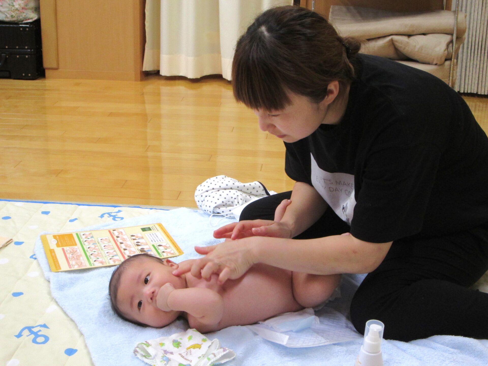 講師の先生をお呼びし、ベビーマッサージを行います。