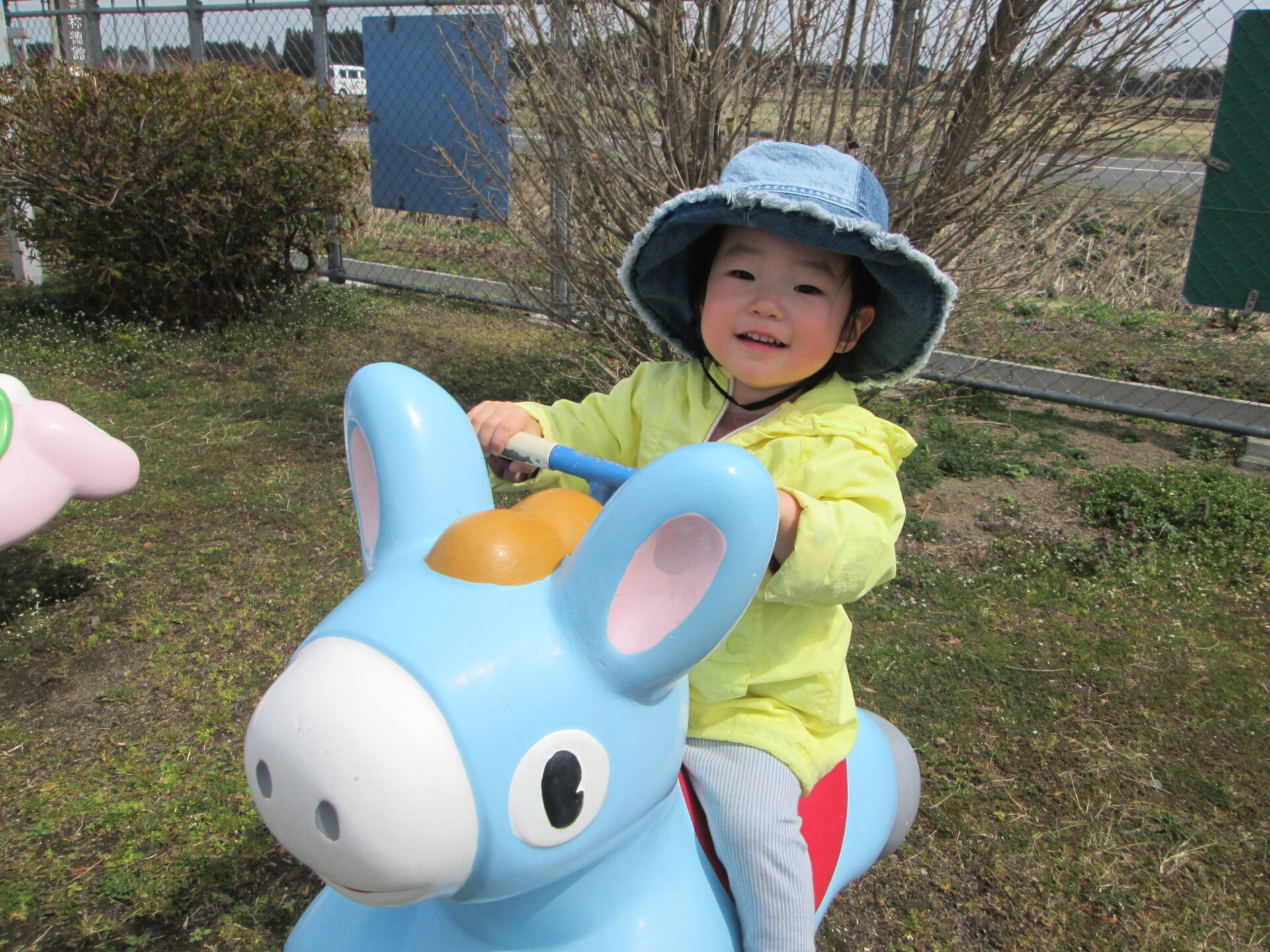 | 保育方針 | 1.生活の中で励ましあい、協力しあう優しい子どもを育てる。 2.大切な幼児期に、 日常の生活において社会の常識を学び、がんばる子どもを育てる。 3.ひとり一人の子どもの幸せを願い、 共に育てる保護者の皆様との固い信頼関係を築き、 地域との協調を図りながら、心豊かな子どもを育てる。 |